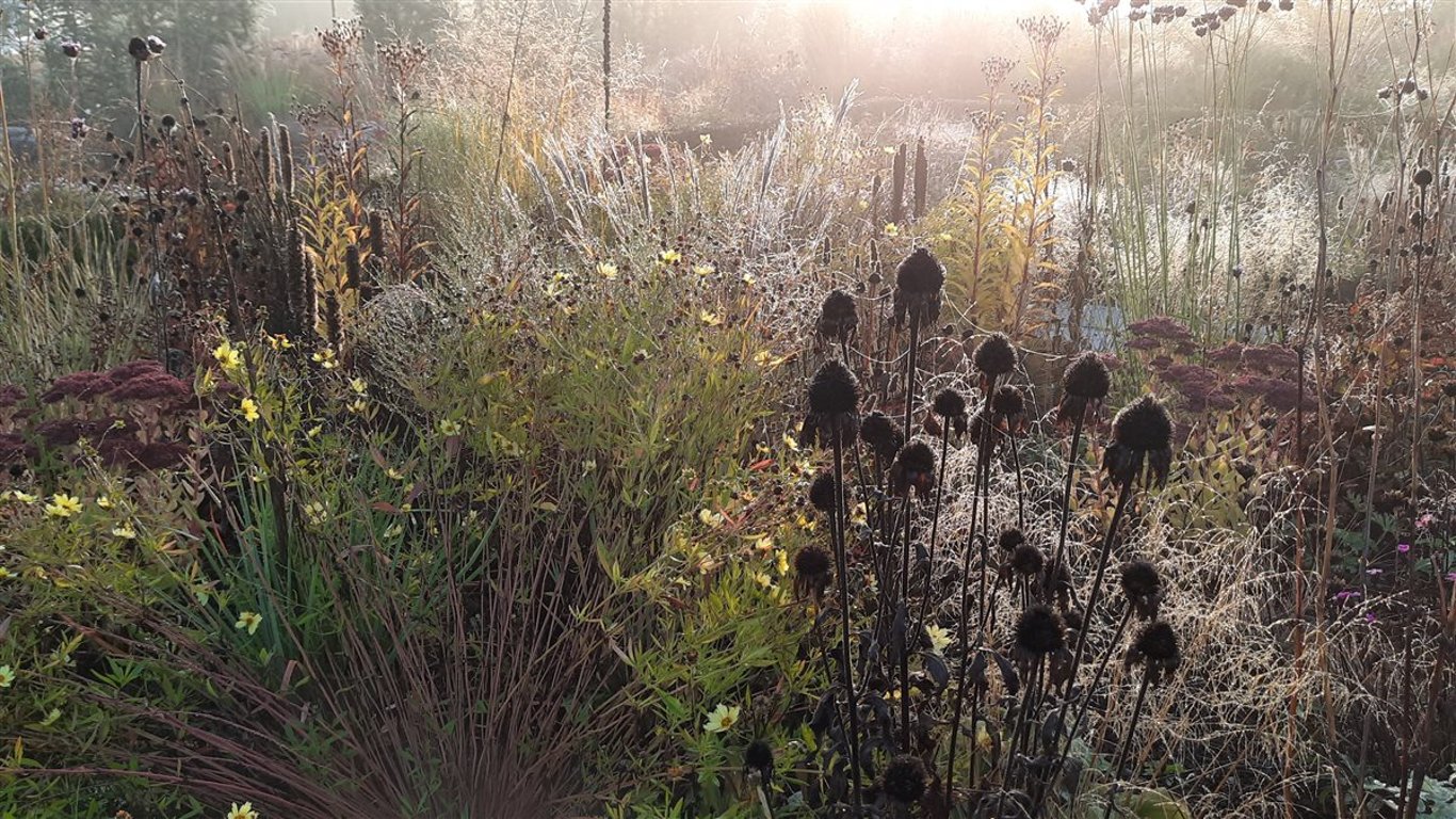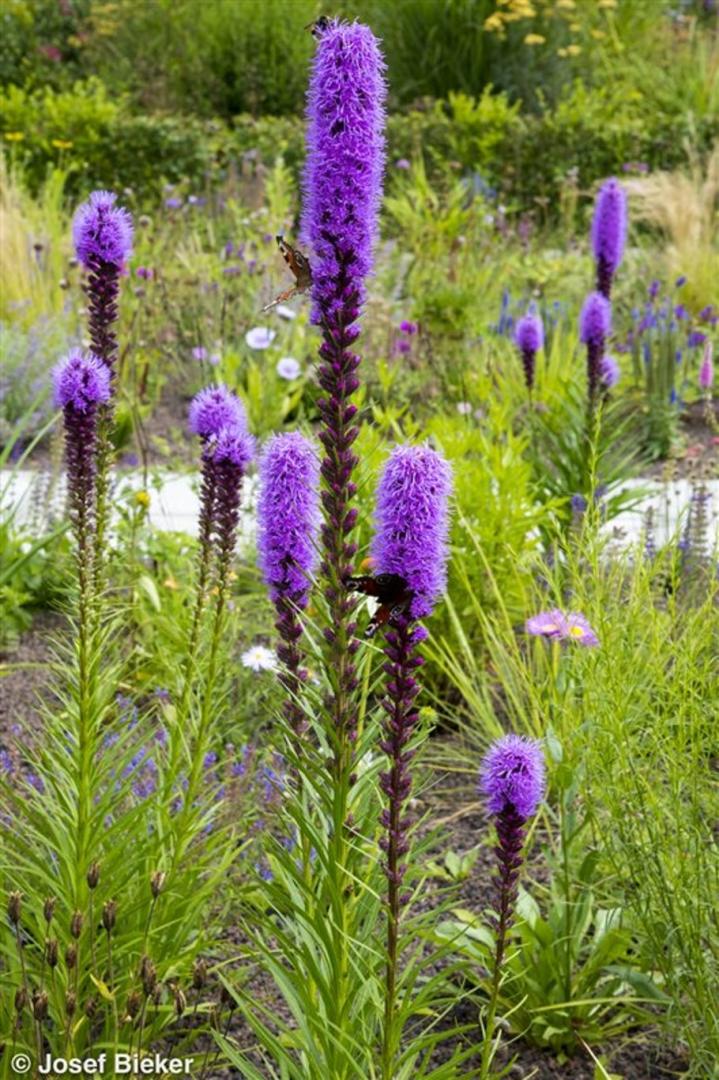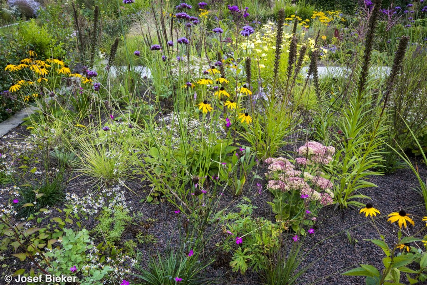 Enkele plantensoorten in dit mengsel Hemerocallis, Thalictrum, Salvia, Echinacea, Aster, Verbena, Kniphofia, Vernonia en verschillende hoge siergrassen. Het kleurenschema en de foto’s geven een impressie van de kleurschakering van de betreffende kant-en-klare Prairie Garden® plantcombinatie. Prairie Garden® wordt op beeld geleverd. Afhankelijk van externe omstandigheden, zoals weer, bodem en omgeving, kunnen de kleuren enigszins afwijken. Afhankelijk van de grootte van het plantvak kunnen andere plantsoorten worden gebruikt dan weergegeven op de sfeerbeelden.