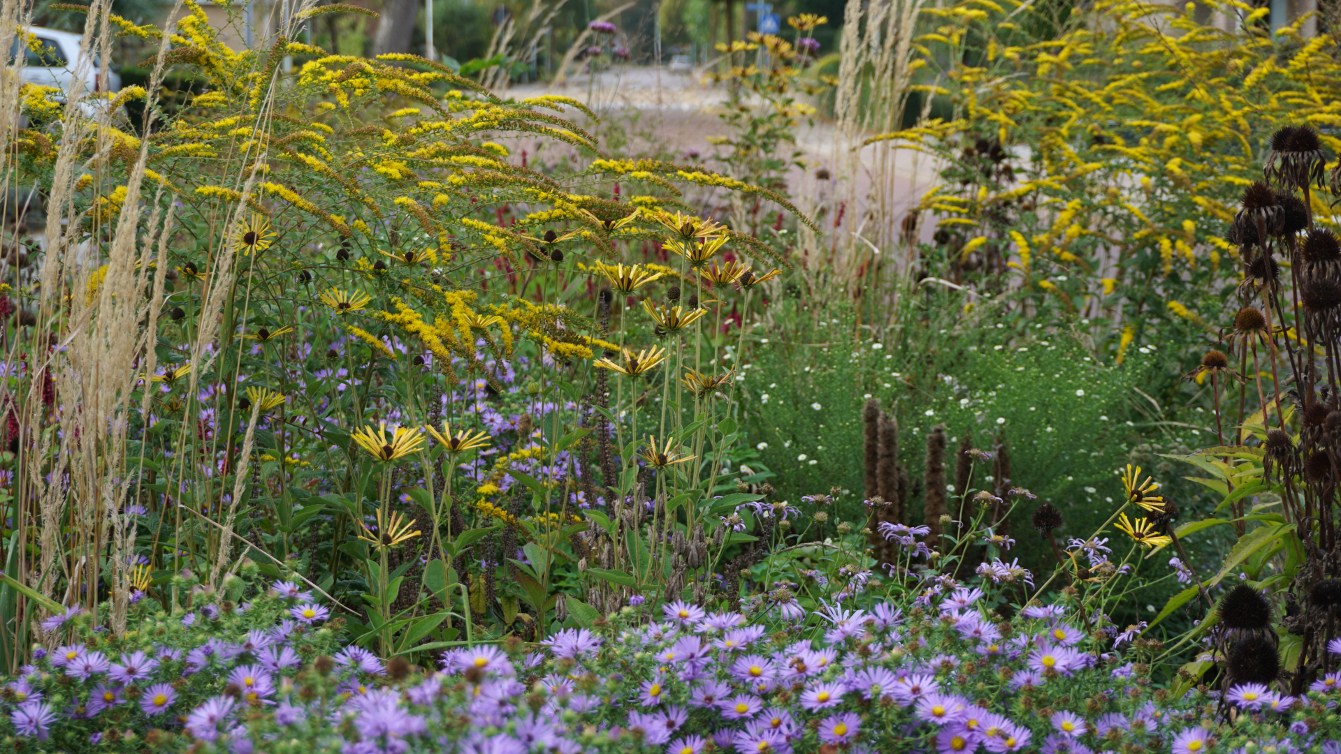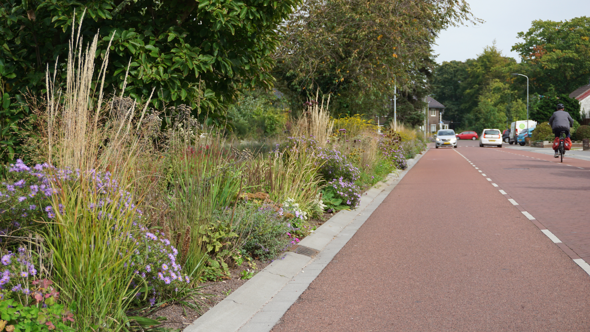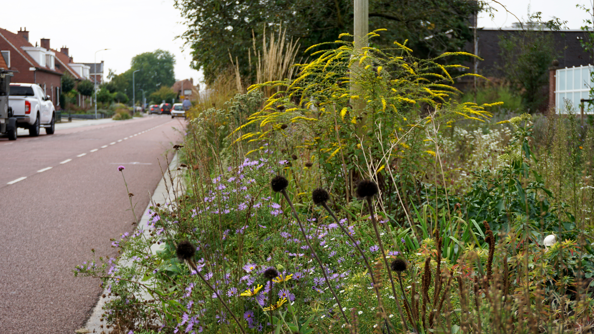 Voor de beplanting van ruim 2.500 m2 groenstroken is bewust gekozen voor het Prairie Garden concept. 'Het is de meest klimaatadaptieve en onderhoudsarme beplanting die je maar kunt vinden’, aldus Laurens Lageschaar. ‘Daarbij zijn alle wensen van de gemeente verwerkt in ons beplantingsplan op maat.'