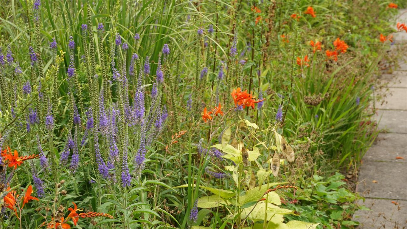 Enkele inheemse plantensoorten in dit mengsel Veronica, Campanula, Digitalis. Gecombineerd met reguliere soorten en enkele siergrassen. Wildissimo® wordt op beeld geleverd. Afhankelijk van externe omstandigheden, zoals weer, bodem en omgeving, kunnen de kleuren enigszins afwijken. Afhankelijk van de grootte van het plantvak kunnen andere plantsoorten worden gebruikt dan weergegeven op de sfeerbeelden.