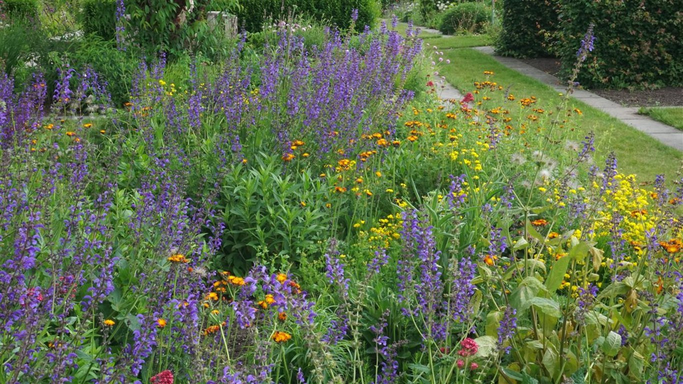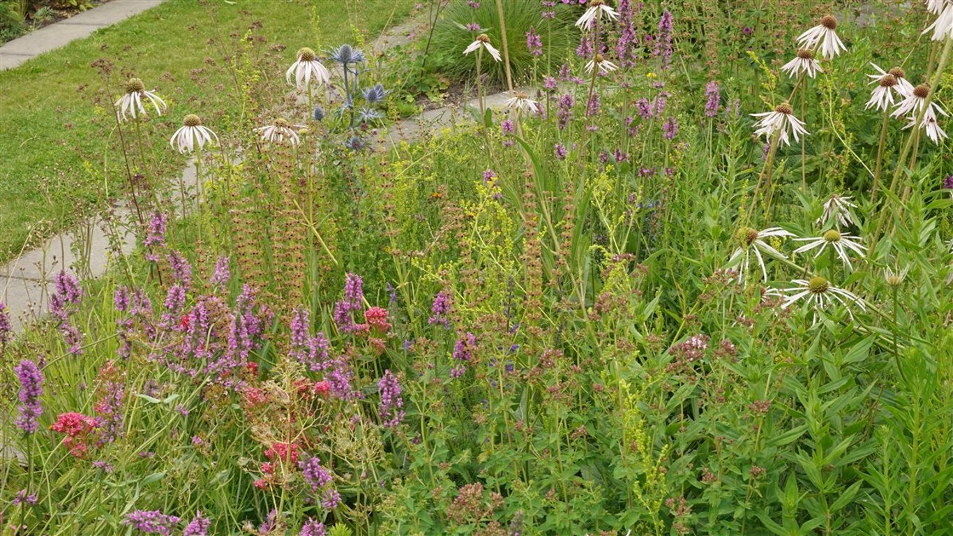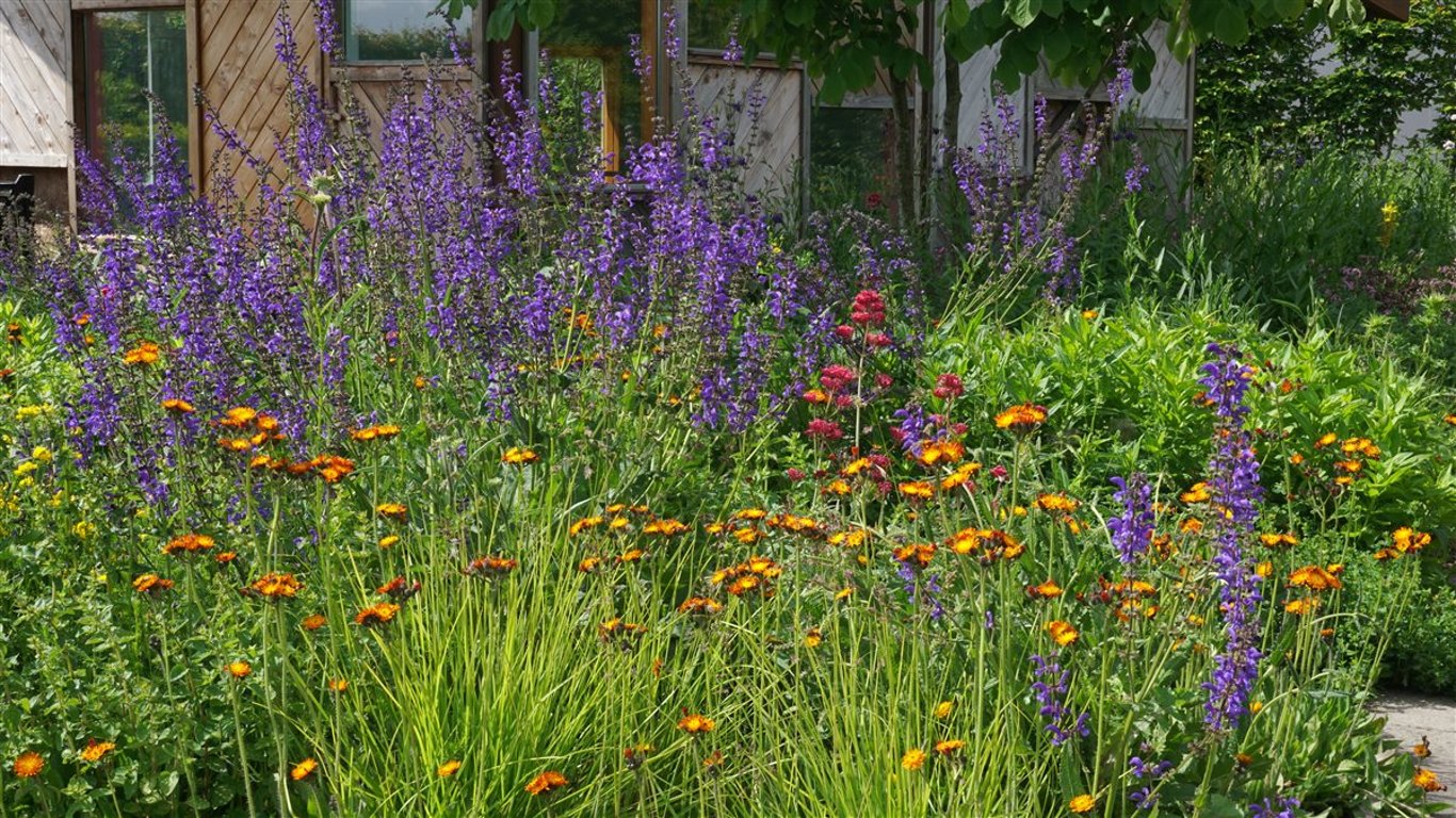 Enkele inheemse plantsoorten in dit mengsel Hieracium, Salvia, Stachys. Origanum. Gebombineerd met enkele siergrassen. Wildissimo® wordt op beeld geleverd. Afhankelijk van externe omstandigheden, zoals weer, bodem en omgeving, kunnen de kleuren enigszins afwijken. Afhankelijk van de grootte van het plantvak kunnen andere plantsoorten worden gebruikt dan weergegeven op de sfeerbeelden.