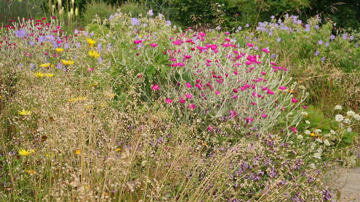Enkele inheemse plantensoorten in dit mengsel Lychnis, Hieracium, Prunella, Mentha. Gecombineerd met reguliere soorten en enkele siergrassen. Wildissimo® wordt op beeld geleverd. Afhankelijk van externe omstandigheden, zoals weer, bodem en omgeving, kunnen de kleuren enigszins afwijken. Afhankelijk van de grootte van het plantvak kunnen andere plantsoorten worden gebruikt dan weergegeven op de sfeerbeelden.